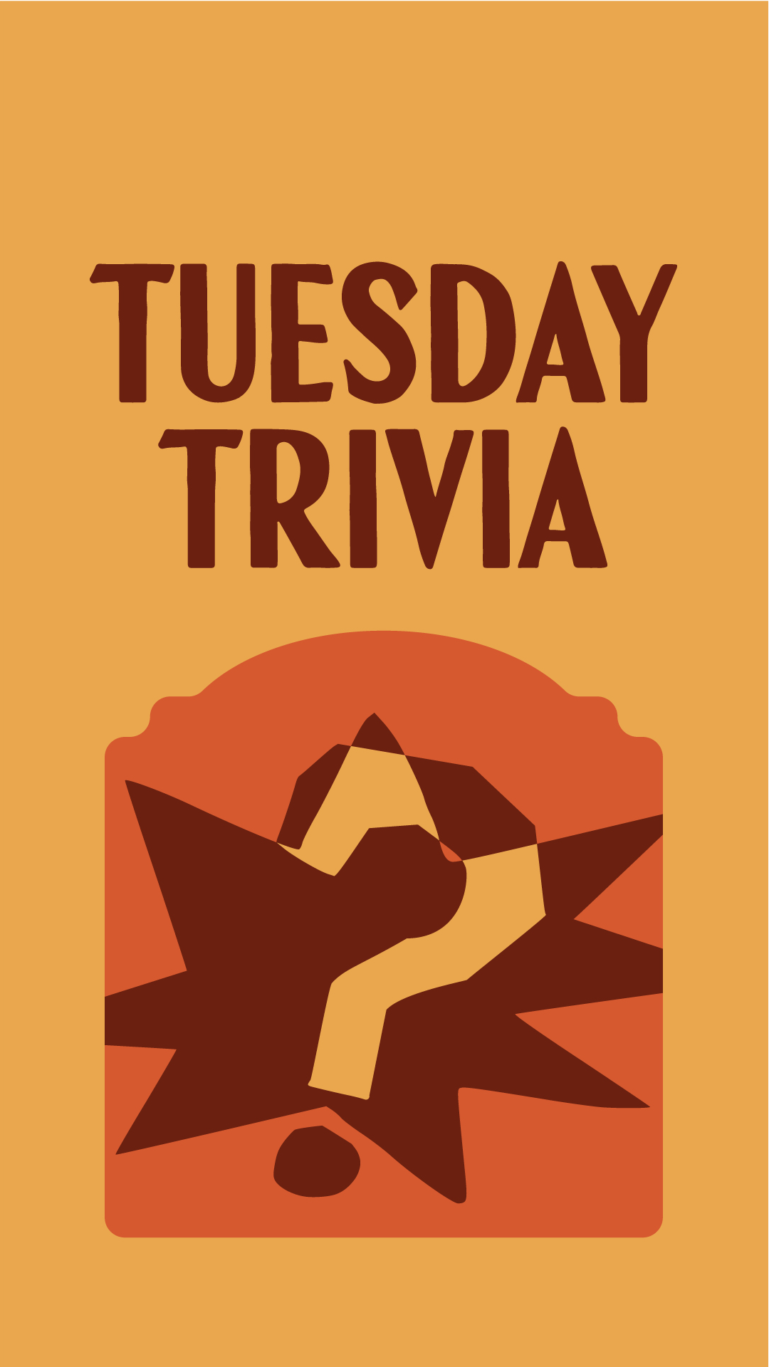 Your weekly trivia with a twist: every Tuesday, grab your mates for a fast, fun and interactive trivia night with the chance to win great prizes each week.